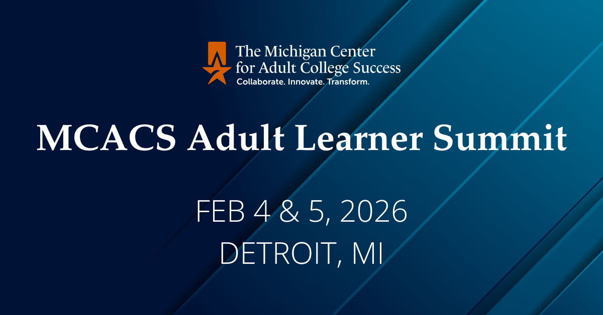 The Michigan Center for Adult College Success invites partners to share their programs, workshops, and conferences through our events calendar. This calendar highlights opportunities that support adult learners and keeps stakeholders informed about what’s happening across Michigan.