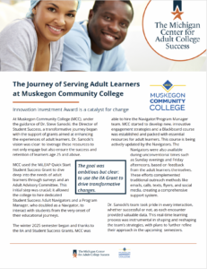 At Muskegon Community College (MCC), Dr. Steve Sanocki—Director of Student Success—has led a transformative initiative with the help of IIA funding. He envisioned using these resources not only to engage adult learners but also to retain them effectively.